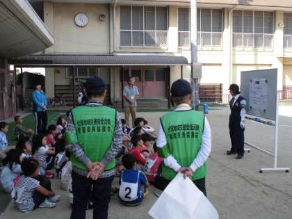 伏見署や交通安全ボランティアなどたくさんの方にご協力いただいて実施しています。