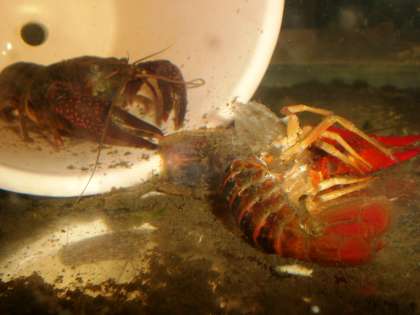 今朝、学校に来ましたら、南浜アクアリウムのザリガニが脱皮していました。