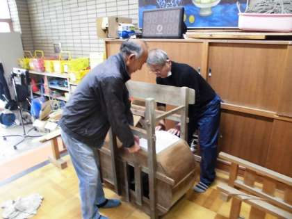 学校運営協議会の理事のみなさんが、2年生の米作りの学習で使えるように、唐箕の修復をしてくださいました。