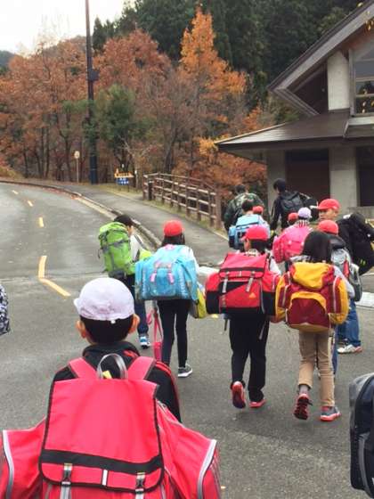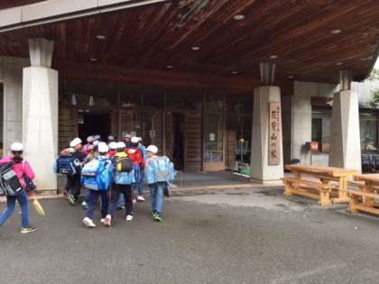 山の家に着きました。これから,たくさん楽しい体験ができます。自分からすすんで活動すると,より楽しくなります。
