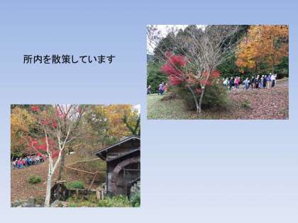 花背山の家所内を散策しています。市内よりも葉の色づきが早く,素敵な紅葉の中をのんびり歩いています。