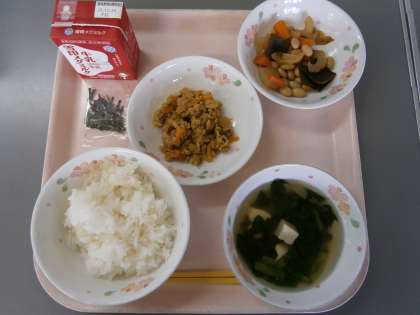 副菜の『五目煮豆』も,4月から何回か給食に登場しているので食べなれてきました。味も覚えて,自分たちの体にあった量をしっかり食べられるようになりました。