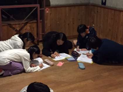 一日の活動の締めくくりに班ごとにミーティングを行いました。