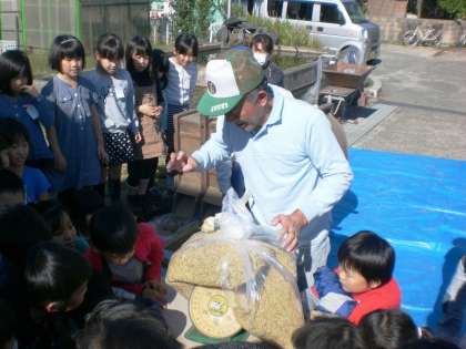 2年生の田んぼでとれた、お米の脱穀を行いました。