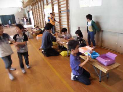 1年生は,園児に楽しんでもらう「あきまつり」の準備をしています。