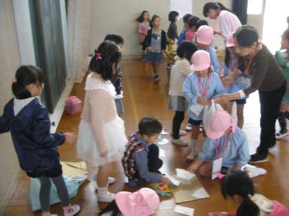 本日,2・3校時に保幼小連携の一環として「あきまつり」を行いました。1年生の子どもたちは,この日のために自分たちでお店を考え,道具を作成しました。今日は,店番をしたり案内をしたりと自分たちで進んで活動することができました。