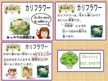 子どもたちにとって同じ仲間の「ブロッコリー」はなじみがありますが,「カリフラワー」は,食べた経験も少なく心配していました。でも今週は,給食委員会11月の残菜調べ週間ということもあるのか,ほとんど残さいはありませんでした。うれしいです。