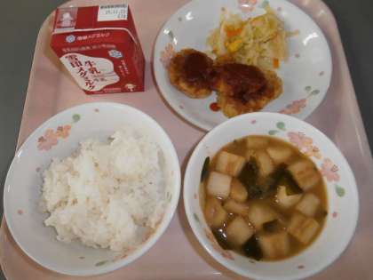 今日も朝早くから,給食室では,「ヒレ肉」に「小麦粉とパン粉」で衣をつけ油で揚げて作りました。とても時間がかかり大変ですが,子どもたちが毎年とても楽しみにしてくれているので,給食室でも力が入ります。