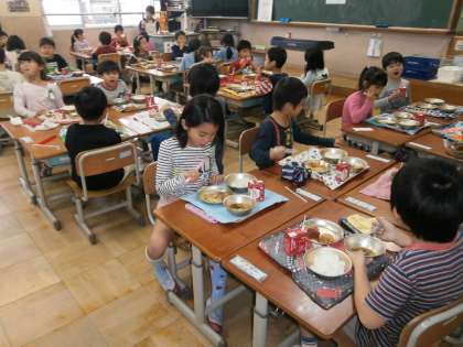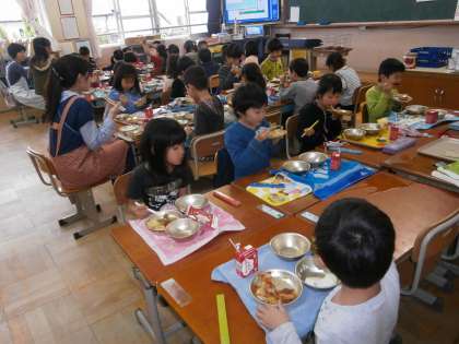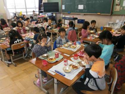 1年生のどのクラスにも おいしい笑顔がいっぱいでした。