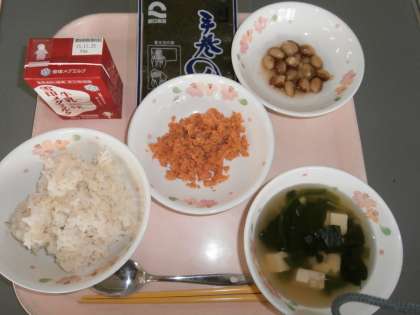 「ぼくは梅が入っていなかったけど,さけフレークだけでもすごくおいしかったです。また,おいしい給食つくってください。」・・・5の2(梅は細かく刻んであったからね)