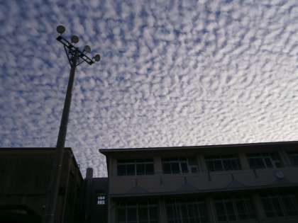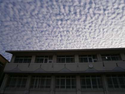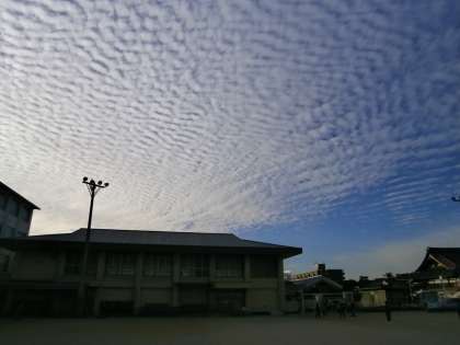 何とも幻想的で美しい空「見て見て雲」と運動場で遊んでいる子どもたちも空を見上げて見入っていました。