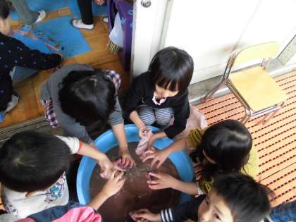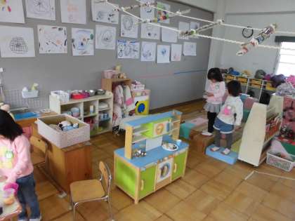 そこで,本校の教職員が,中間休みや昼休みに幼稚園に出かけて保育室の様子を参観させていただいています。