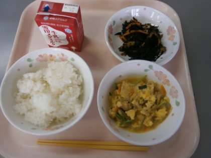 1年生のあるクラスでは,「親子煮の親子って何と何でしょう。」という担任の先生の質問に,真剣に考えている子どもたちの姿がありました。身近なことから食育。食べることに関心をもち食べることが楽しいと感じられる子に育ってほしいと思います。
