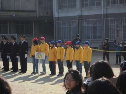 消防団の出初訓練で、伏見南浜小学校 の 伏見少年消防クラブ南浜班も参加させていただきました。