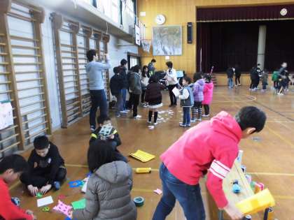 今日は1年生を招待して、6年生と遊びました。