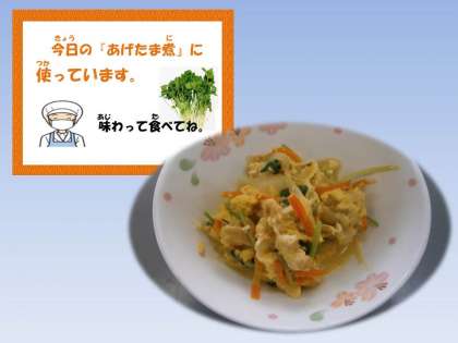 今日の給食は,卵料理『あげたま煮』でした。