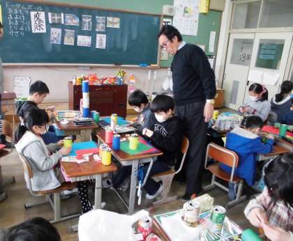 3年生でトーテムポールを作っています。