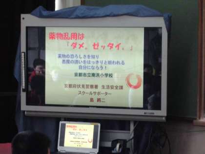 6年生でスクールサポーターの方々が伏見警察署から来ていただき、犯罪や非行防止についてお話をしてくださいました。