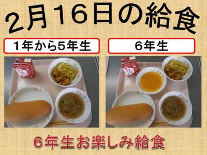 今日6年生は,お楽しみ給食でした。1年に1回 6年生だけの特別メニューがあります。今年は,手作りのデザート(みかん寒天)にお祝いの気持ちを込めました。