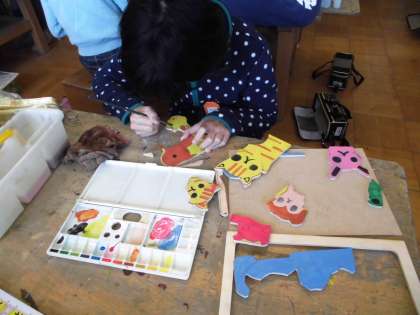 完成した友だちの作品の作品でパズルをして遊んでいました。