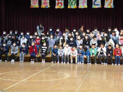 集団登校やたて割り遊びなど、いっぱい遊んでもらったりお世話になった6年生に在校生が感謝の気持ちを込めて合唱合奏とメッセージを伝えました。