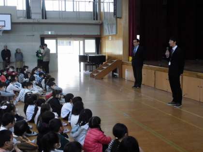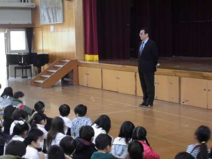 北門付近の寒桜が満開になり、草木が芽吹き、花が開花する時期に、子どもたちも成長開花するようにお話をしました。