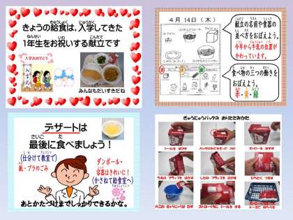 1年生は,給食ボランティアの方に見守られ,自分たちで当番活動も頑張りました。幼稚園や保育園の時と違い 自分たちで何でもやります。はじめての事ばかりで,少し時間はかかりますが,とても頼もしい1年生です。見守ってくださった給食ボランティアの皆さんありがとうございました。 明日ももう一日 お世話になります。