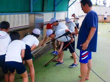 1年間使っていなかったプールの汚れを落とし、床も壁もサイドもみんなでこすって磨きました。