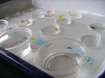 受精後すぐのたまごから10日以上たったものまで,たくさんのたまごを観察しました。