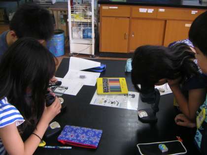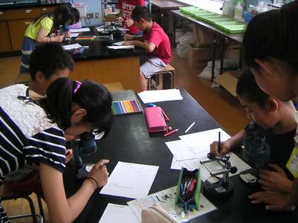5年生では「メダカのたんじょう」の学習をしています。たまごがどのように変化して子メダカになるのか,双眼実体顕微鏡と解剖顕微鏡を使って調べました。