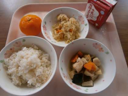 今日の給食は,5月にも実施した『高野豆腐と野菜のたき合わせ』でした。