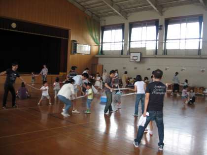 年長組の子どもたちが、保護者の方々と一緒に、楽しく遊んでいました。