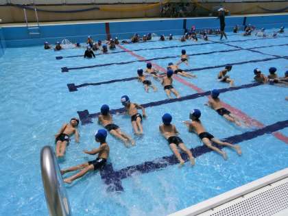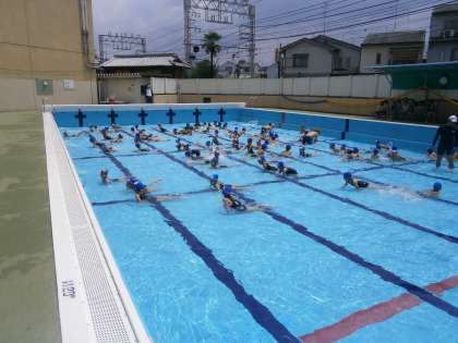 プールの水位は10センチ〜20センチなのですが,子どもたちは体を付けて泳ぐように楽しんでいました。