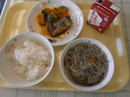 副菜の『かぼちゃの煮つけ』は,夏が旬の『夏の暑さに負けない体をつくる食べ物「かぼちゃ」を「煮つけ」として食べる事』を知らせる1年に1度は登場するメニューです。天ぷらなどでは食べるけど,家庭で『煮つけ』として食べなれないことで苦手な子どももいましたが,自分に合った量を食べきることができました。少しずつ『煮つけ』として食べる経験もしていってほしいと思います。