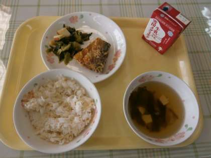 「さばのたつたあげが,かりかりしておいしかったです。かまぼこが やわらかくておいしかったです。さばのたつたあげがほねがなかったのでおいしかったです。すましじるのなかのわかめがつるっとしておいしかったです。」・・・つくし3ねん・5ねん・6ねん
