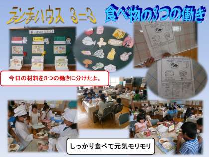 暑い時期 食欲が落ち気味ですが,伏見南浜小学校では,「しっかり食べて暑い夏を元気に乗り切ろう。」と各クラスで担任が,子どもたちに声かけをしています。時間内に食べることが難しい子どもには,一口で口の中に入れる量や 噛み方などうまくできているか丁寧に観察しています。このような食べる力は,子どもたちの学習意欲にも大きく関係することから とても大切にしています。 ご家庭でも是非見てあげてください。