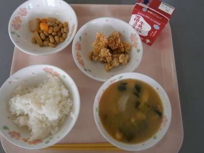 「けいにくのこはくあげがこりこりしていておいしかったです。みそしるのたまねぎがシャキシャキしていておいしかったです。」・・・3の2