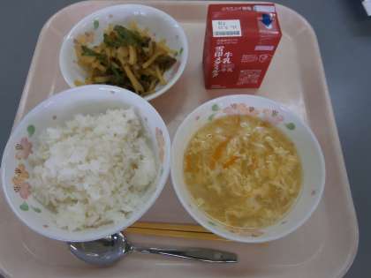 「ちゅうかコーンスープがあたたかくておいしかったです。ピーマンとにんにくのいためがおいしかったです。」・・・3の3