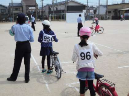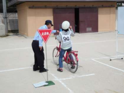 10月12日(水)に自転車教室を実施しました。警察官の方から自転車の乗り方の指導やコース説明をしていただき,自転車の技能試験に挑戦しました。また,学科試験もあり,本当の教習所のような気分で取り組むことができました。