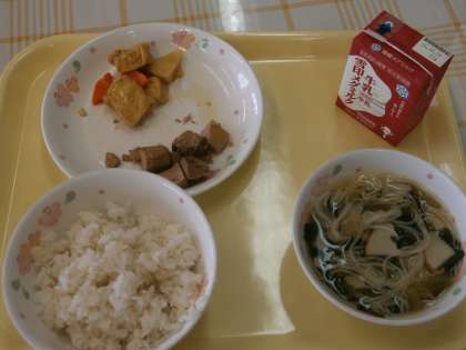 「なま節」は,春に『なま節とふきの煮つけ』で食べています。給食にも慣れていない時に食べた「なま節」は,1年生にとっては,食べにくそうにしている子どもも多かったのですが,今では,給食にもすっかり慣れ,食べる力がついてきたようで,ほとんどの子どもが食べられていました。