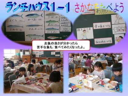 一緒に給食を食べた1年生は,食の学習が「さかなをたべよう」というテーマだったので,進んで魚(なま節)を食べる姿も見られました。