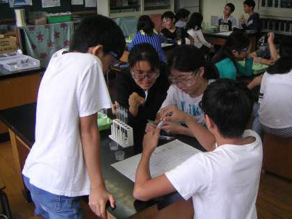 「塩酸と炭酸水は,石灰水かアルミニウムを使えば見分けられる。」など,グループで相談しながら5種類の水よう液を判別し,全グループが正解できました。