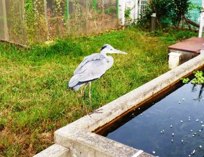 今日も,観察池に鷺が来ていました。