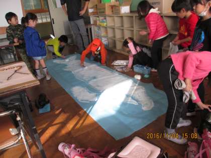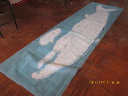 大きな布地に大きな「くじらぐも」を描きました。