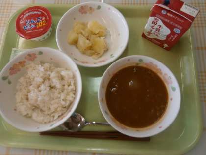 「りんごゼリーおいしかったよ。ジャーマンポテトのじゃがいもがおいしかったよ。」・・・2の2