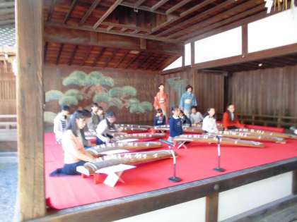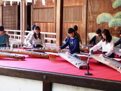 御香宮能舞台で行われた邦楽発表会に、伏見南浜小学校の「琴部」が、参加し発表しました。