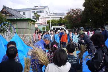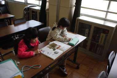 今日は昔の道具を使って脱穀作業をする2年生の姿を参観しました。その後,昔の道具について興味や疑問をもったことを本やパソコンで調べました。疑問が解決される喜びを知ったようです。