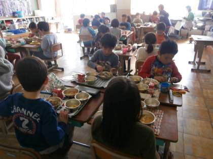 交流給食 みんなで食べるとおいしいね。うれしいね。