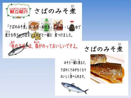 「さばのみそにがみそとさばがくみあって おいしかったです。」・・・3の2