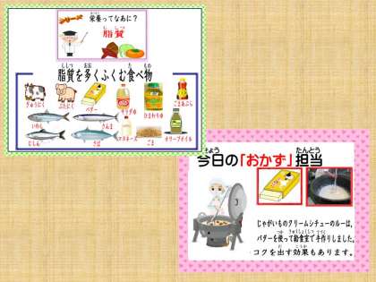 「ひじきのソテーのコーンがすこしシャキシャキでおいしかったよ。また 作ってね。じゃがいものクリームシチューのじゃがいもがフワフワしていておいしかったよ。また,作ってね。」・・・2の1